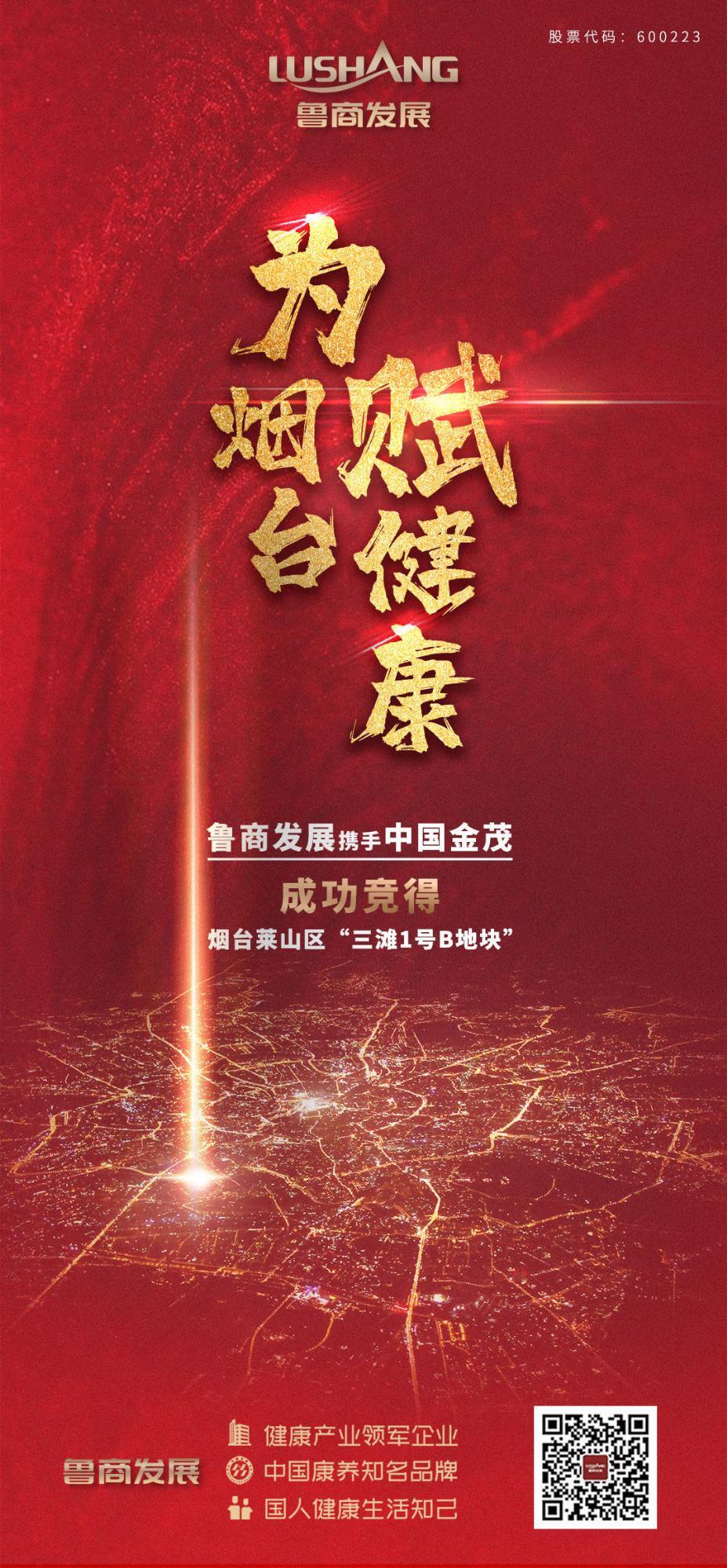 2月20日,问鼎在线(中国)健康产业发展股份有限公司(简称问鼎在线(中国)发展)同中国金茂控股集团有限公司(简称中国金茂)合资成立的烟台鲁茂置业有限公司,通过烟台市土地市场网上交易系统竞得宗地编号为烟J〔2020〕L001号三滩1号B地块国有建设用地使用权,获取土地面积约248亩。