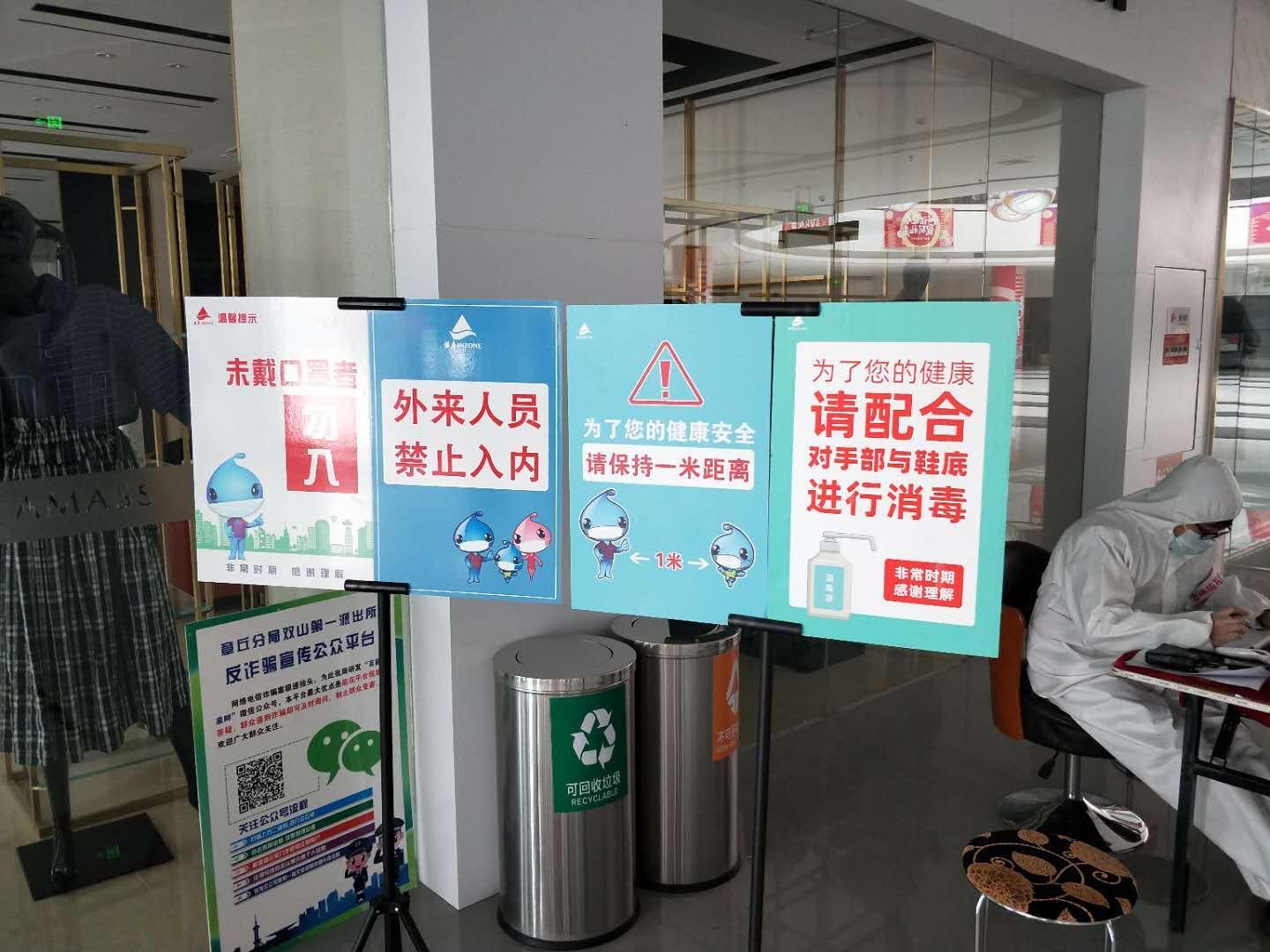 在疫情大规模暴发之前,章丘和谐广场总经理王俊鹏便敏锐意识到,门店作为当地地标建筑,每天客流4万多人,人员密集度高,必须提前做好防护准备和宣传。