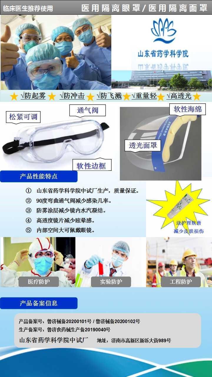 依托山东省医用高分子材料重点实验室骨干人员,器械所组织成立“器械应急攻关小组”,从筛选课题、设计优化结构、增强防雾功能,到撰写技术资料,努力克服了模具企业延迟开工、配件采购物流不畅等困难,立项仅10天,就获得了医用隔离眼罩(鲁济械备20200101)和医用隔离面罩(鲁济械备20200102)两项医疗器械产品备案证书。
