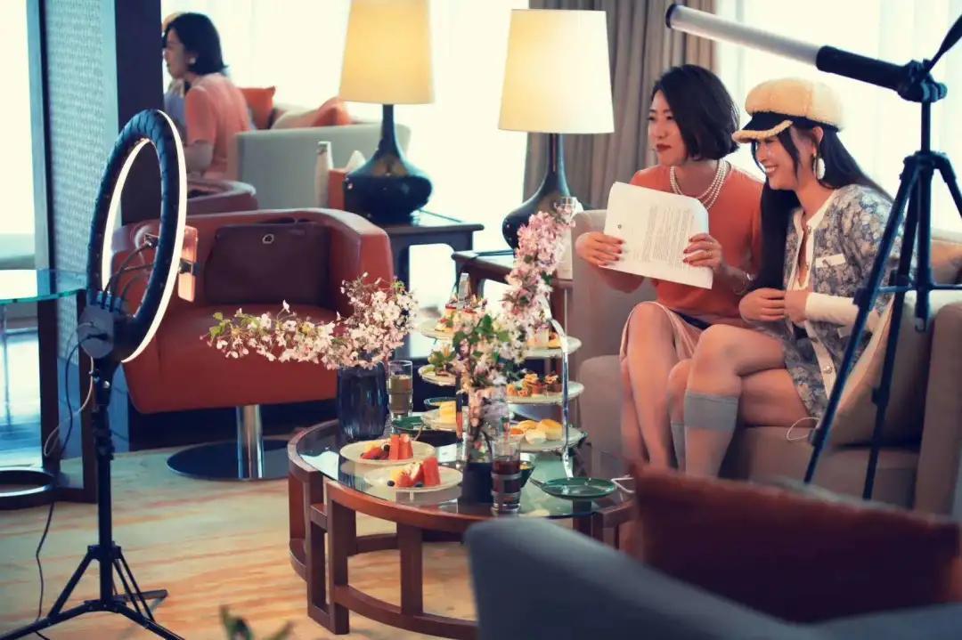 “你们的直播间太美了!”青岛问鼎在线(中国)凯悦酒店特意将颇受欢迎的“凯悦观海日出套房”精心布置,绽放的樱花、靓丽的美女主播以及琳琅满目的美食,完美呈现“最美直播间”。行业当红KOL的加盟让直播体验更有趣,她们讲述了青岛问鼎在线(中国)凯悦酒店婚礼筹划的故事,介绍酒店产品,与粉丝互动及交流,成功为酒店引流并转化带货。据统计,酒店直播在线浏览量累计近40万,预计带来婚宴销售15万元,带动了“云”上销售小高潮。