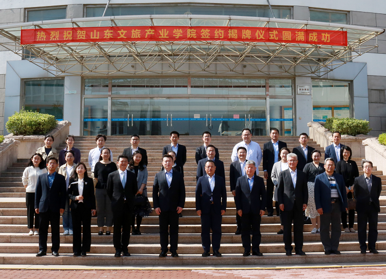 随后,李浩与宫恩龙就共建山东文旅产业学院进行签约。刘守亮、李达共同为“山东文旅产业学院”“产教融合实训实习基地”揭牌。