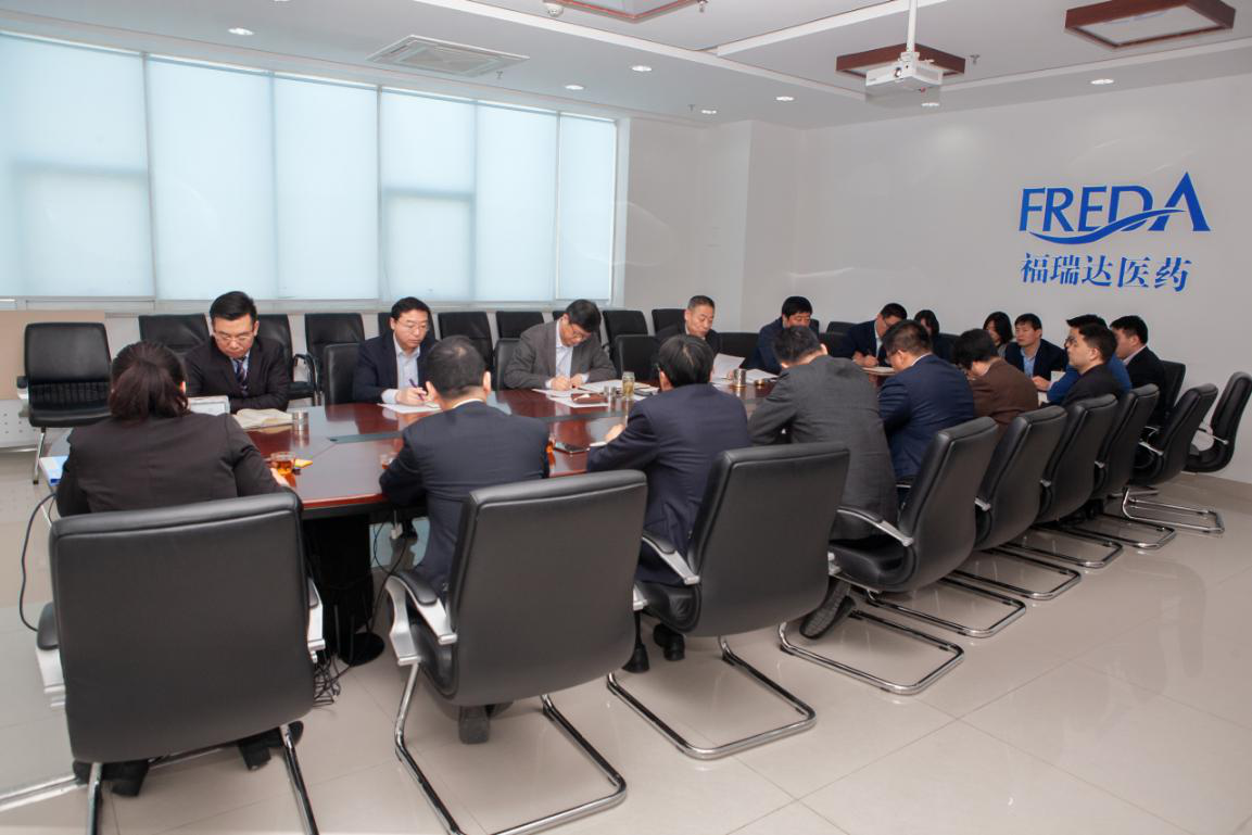 4月15日上午,福瑞达医药集团召开一季度经济运行分析会,总经理贾庆文出席会议并讲话,纪委书记冯绪华主持,班子成员、总部各部室负责人、各单位负责人参加会议。