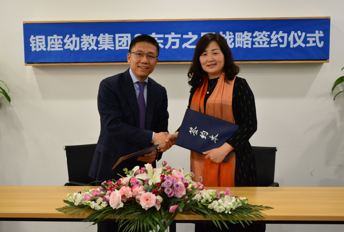 4月15日,山东银座·英才幼儿园(集团)(以下简称银座幼教)与东方之星学前教育机构(以下简称东方之星)在北京签署战略合作协议,双方将在学前教育新政下依托各自优势,在发展模式的建立与实践上开展全面深入的合作。银座幼教党总支书记、董事长焦敏与东方之星董事长杨文泽代表双方签署协议。